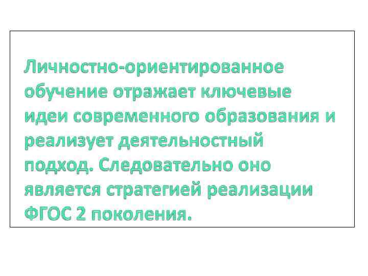 1. Личностно ориентированное развивающее образование (В. Д. Шадриков. В. И. Слободчиков, И. С. Якиманская) Цель- развитие каждого ребенка с учетом его индивидуальных особенностей и личностного профиля • Опора на уникальный и неповторимый субъектный опыт каждого ученика, сложившийся в его реальной жизнедеятельности, на основе усваиваемых научных понятий • Взаимодействие учителя и ученика строится по модели сбалансированных инициатив каждого как равноправных партнеров • Переход от учебной ситуации через проблемную к образовательной.