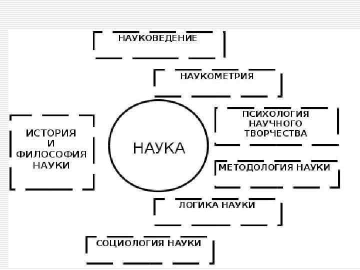 Наука в широком смысле включает в себя следующие компоненты: научную и научно-техническую деятельность научные учреждения, экспериментальное и лабораторное оборудование научных сотрудников методы научно-исследовательской работы понятийный и категориальный аппарат систему научной информации всю сумму накопленных ранее научных знаний