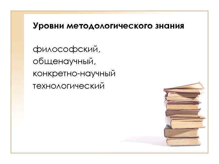 Уровни методологического знания философский, общенаучный, конкретно-научный технологический