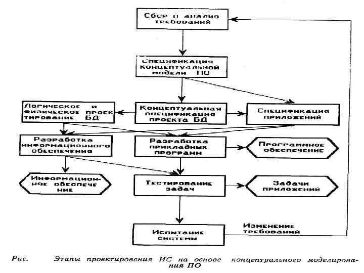 Основные этапы процесса создания ИС на основе методологии концептуального проектирования ПО • сбор и анализ информационных потребностей пользователей и системный анализ предметной области; • построение концептуальной (понятийной) модели предметной области; • создание концептуальной модели базы данных; • разработку системы с помощью инструментальных средств выбранной СУБД.