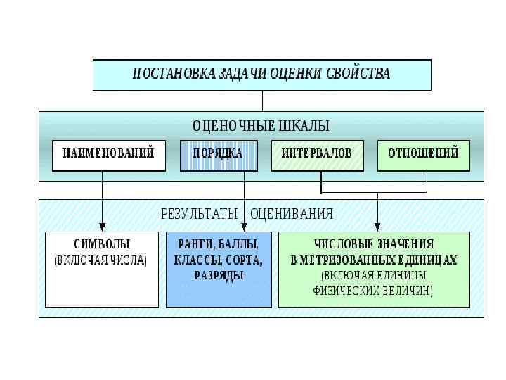 Измерительной шкалой • называется множество обозначений, используемых для регистрации состояний наблюдаемого объекта. • В основе оценки процесс сопоставления значений качественных или количественных характеристик исследуемой системы значениям соответствующей шкалы.