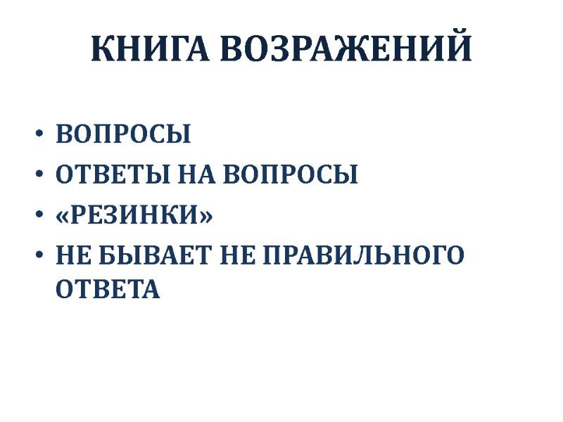 КНИГА ВОЗРАЖЕНИЙ ВОПРОСЫ ОТВЕТЫ НА ВОПРОСЫ «РЕЗИНКИ» НЕ БЫВАЕТ НЕ ПРАВИЛЬНОГО ОТВЕТА