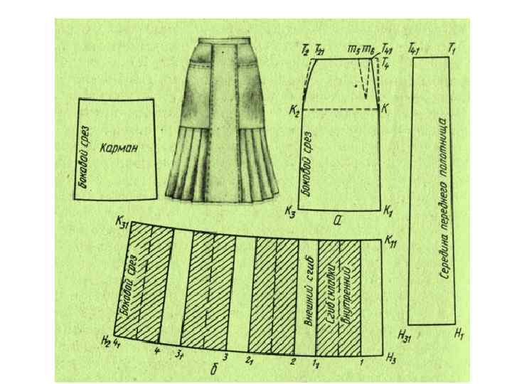 Проектирование складок а –односторонняя и встречная или бантовая складка б – шлица Типовое значение глубины складок 6 см для юбки и 8 см для пальто и плаща В изделиях из плотных материалов проектируют складки со швом по внутреннему сгибу. В этом случае под встречную складку проектируют отрезную деталь.