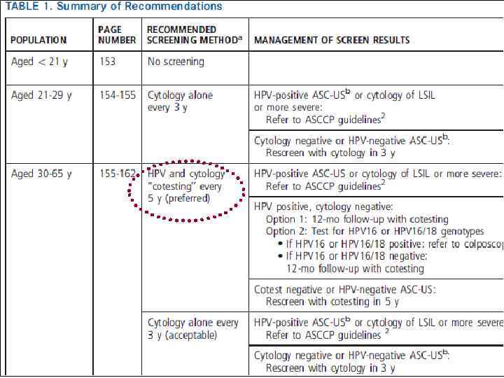 Рекомендации по скринингу для женщин 30 -69 лет (ВПЧ-тест и ПАП-тест одновременно - предпочтительный метод скрининга)