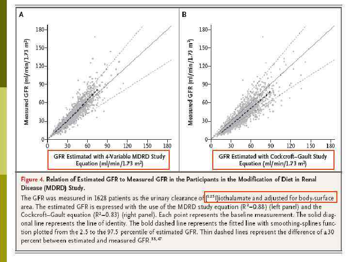 В. Определение СКФ по формулам MDRD и Cockcroft-Gault p «Отрицательные» свойства n Плохо коррелирует с «истинной» СКФ на уровне её физиологических значений* n Не рекомендуются для применения у детей, стариков, при развернутых заболеваниях печени и кахексии* p Положительные свойства n Четко коррелируют с «истинной» СКФ при её уровне ≤ 60 мл/мин p Не надо возражать, с этим следует согласиться n Определение СКФ по формулам (e. GFR) во всём цивилизованном мире принято не только для клини- ческой практики, но и всех клинических испытанй * клиренс креатинина (проба Реберга) в этих случаях ещё более некорректен