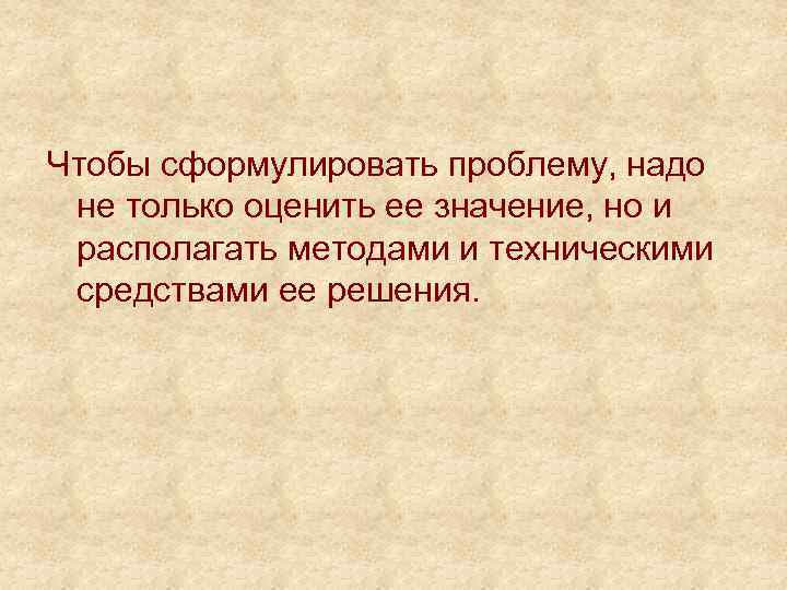 Чтобы сформулировать проблему, надо не только оценить ее значение, но и располагать методами и техническими средствами ее решения.