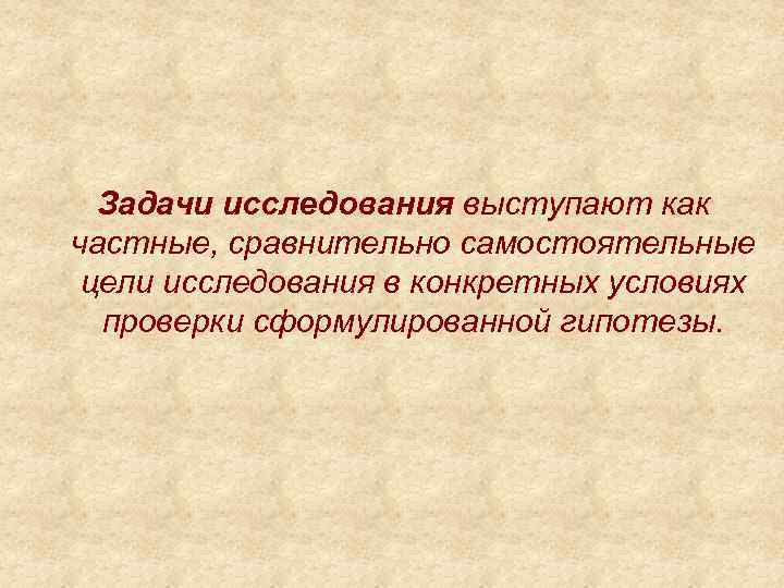 Задачи исследования выступают как частные, сравнительно самостоятельные цели исследования в конкретных условиях проверки сформулированной гипотезы.