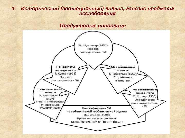 1. Исторический (эволюционный) анализ, генезис предмета исследования Продуктовые инновации