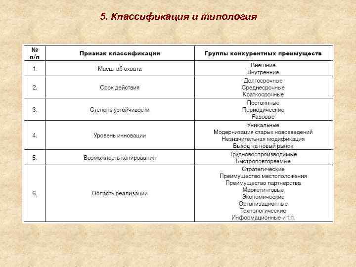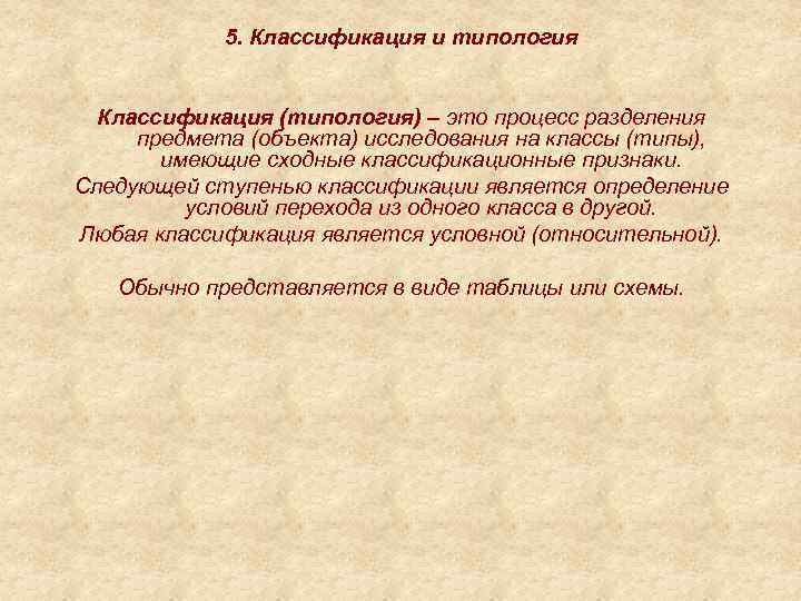 5. Классификация и типология