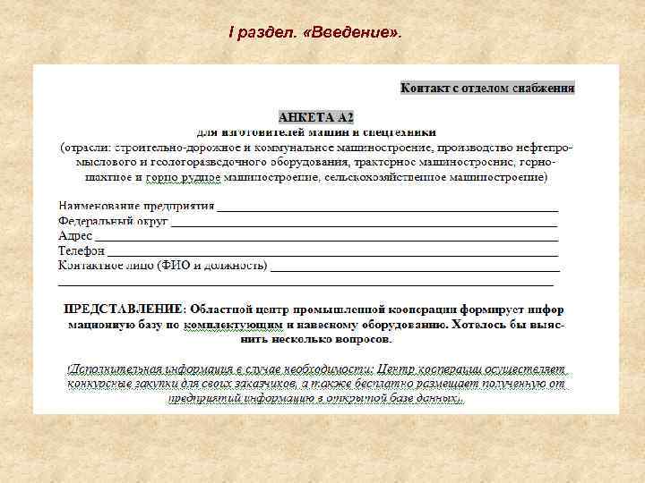 I раздел. «Введение» .