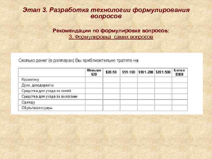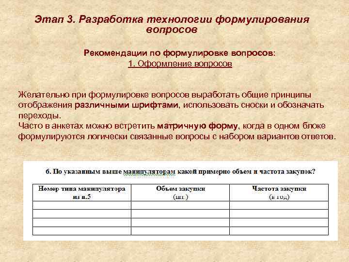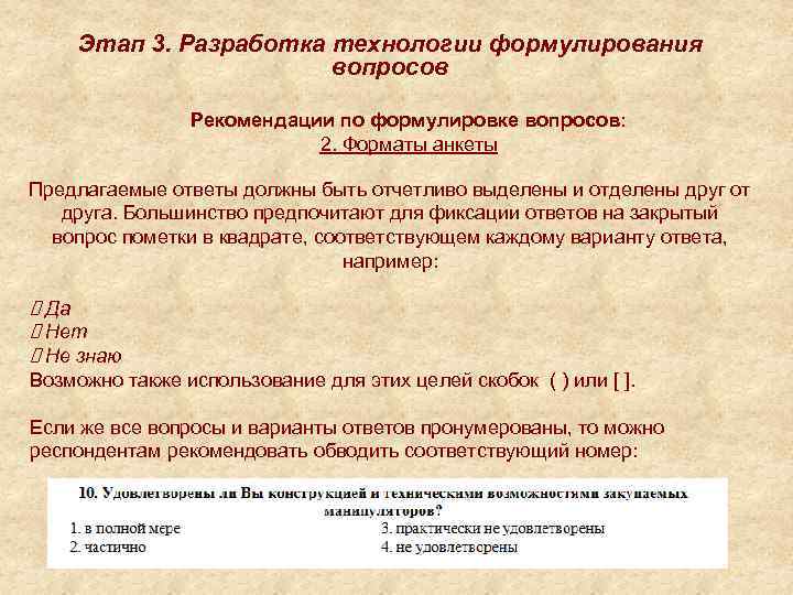 Этап 3. Разработка технологии формулирования вопросов Рекомендации по формулировке вопросов: 3. Формулировка самих вопросов