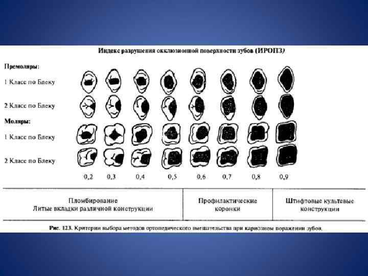 • ВООЗ: Для определения состояния зуба применяются следующие обозначения: С – кариес Р – пульпит Рt – периодонтит П – пломба К – коронка И – искусственный зуб