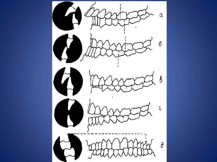 Неправильный (аномальный) прикус образуется в результате врожденных (генетических) или приобретенных (в результате каких-нибудь заболеваний и т. п. ) дефектов зубного ряда и челюстей. Ключевым признаком неправильного прикуса являются различные отклонения от нормы при смыкании верхних и нижних зубов вплоть до полного отсутствия смыкания на отдельных участках, что приводит к нарушению важных функций зубочелюстной системы, а также к искажению правильной формы лица. В зависимости от характера аномалии прикуса выделяются следующие виды неправильного прикуса: глубокий прикус (верхние резцы перекрывают фронтальную поверхность нижних резцов более чем на 50%) открытый прикус (не смыкается большинство зубов обеих челюстей) дистальный прикус (слишком развита верхняя или недоразвита нижняя челюсть) мезиальный прикус (нижняя челюсть заметно выдвинута вперед по отношению верхней) перекрестный прикус (недоразвитость одной стороны какой-либо из челюстей) дистопия (часть зубов расположена неправильно, не на своем месте) Любой из видов неправильного прикуса может привести к очень неприятным последствиям для Вашего организма. Помимо эстетических проблем с неровными зубами и искаженной формой лица, неправильный прикус может ускорить развитие целого ряда заболеваний как ротовой полости, так и общих заболеваний организма.
