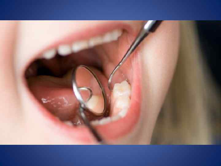 • Осмотр зубов • Производят осмотр всех зубов. • Целесообразно производить осмотр всегда с одной стороны, например, справа налево с моляров нижней челюсти, а затем слева направо – с моляров верхней челюсти • Осмотр производят с помощью набора инструментов, наиболее часто используют стоматологическое зеркало, зонд и стоматологический пинцет. Однако в работе должны быть угловой зонд, экскаватор, металлический шпатель. • При осмотре обращают внимание на цвет зуба, форму и величину. • При наличии кариозной полости проводят ее зондирование: глубина, наличие размягченного дентина, состояние устьев каналов и др.