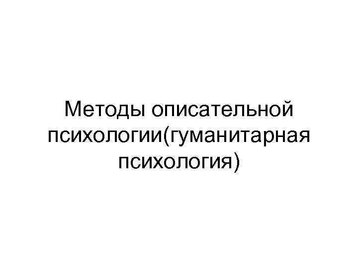 Методы описательной психологии(гуманитарная психология)