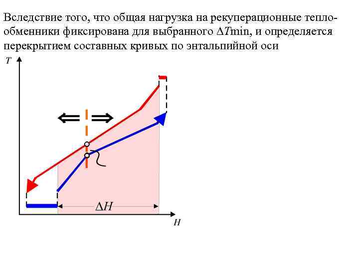Вследствие того, что общая нагрузка на рекуперационные теплообменники фиксирована для выбранного Тmin, и определяется перекрытием составных кривых по энтальпийной оси