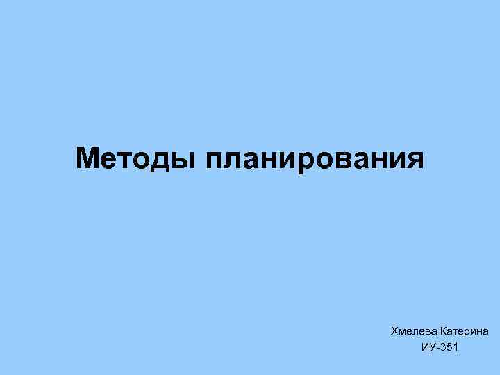 Методы планирования Хмелева Катерина ИУ-351