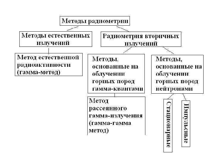 МЕТОДЫ РАДИОМЕТРИИ Радиометрией скважин называют совокупность методов, основанных на регистрации различных ядерных излучений, главным образом гамма-квантов и нейтронов. Радиоактивные методы исследования скважин подразделяются на методы изучения естественной радиоактивности (гамма-метод) и искусственно вызванной радиоактивности (гамма-гамма и нейтронные методы).