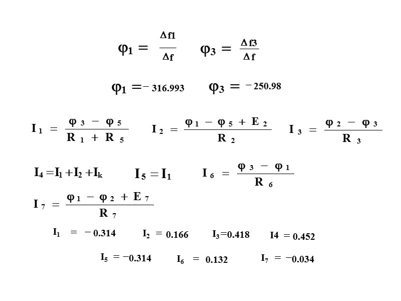 I1R1 = - E3 по второму З.К. для большого контура. I1- Ik2 + I3=0 Ik2- Ik1 – I2=0 I1R1 = - E3 система Решение