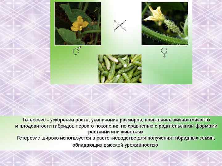 • ГЕТЕРОЗИС – (греч. «изменение» ) гибридная мощь, явление повышенной урожайности, жизнеспособности, высокой плодовитости гибридов первого поколения от скрещивания разных чистых линий. Гетерозис по продуктивности гибрида (в центре), полученный от скрещивания двух различных линий кукурузы
