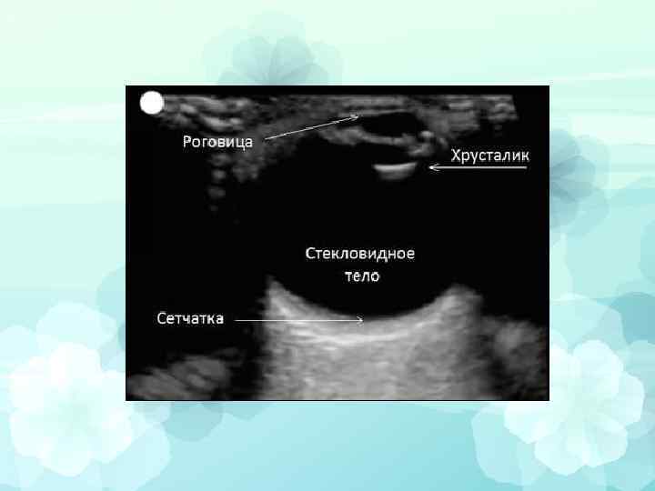 Ультразвуковое исследование Особенно информативно в следующих случаях: 1. Диагностика отслойки сетчатки 2. При поиске друз диска зрительного нерва 3. При обследовании внутриглазной опухоли