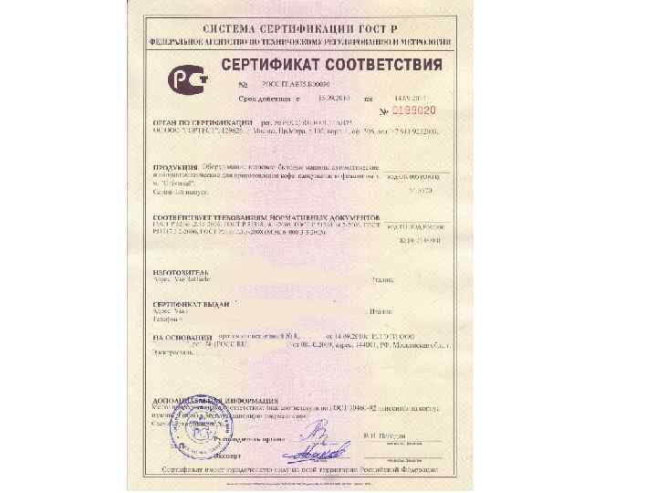 4. В зависимости от схемы сертификации могут производится анализ состояния производства , сертификация производства и системы качества. 5. ОС после анализа протоколов испытаний, поверки производства осуществляет оценку соответствия продукции установленным требованиям. В случае положительных результатов ОС оформляет сертификат и регистрирует его. Сертификат действителен только при наличие регистрационного номера. При обязательной сертификации сертификат выдается если продукция соответствует всем требованиям всех НД, установленных для данной продукции. Обязательной составной частью сертификата соответствия является сертификат пожарной безопасности. Срок действия сертификата устанавливает ОС, но не более чем на три года.