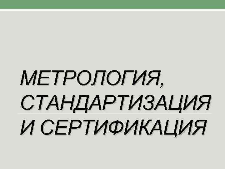 МЕТРОЛОГИЯ, СТАНДАРТИЗАЦИЯ И СЕРТИФИКАЦИЯ