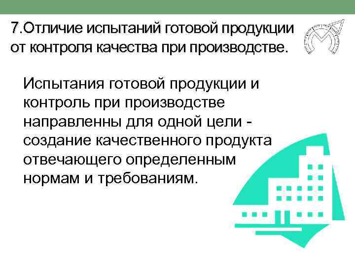 7. Отличие испытаний готовой продукции от контроля качества при производстве. Испытания готовой продукции и контроль при производстве направленны для одной цели создание качественного продукта отвечающего определенным нормам и требованиям.