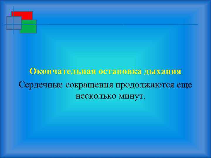Окончательная остановка дыхания Сердечные сокращения продолжаются еще несколько минут.