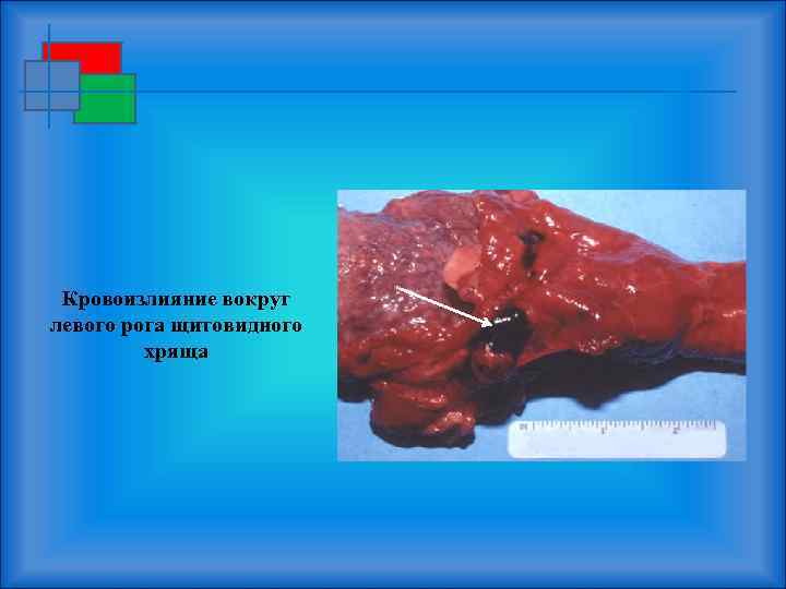 Кровоизлияние вокруг левого рога щитовидного хряща