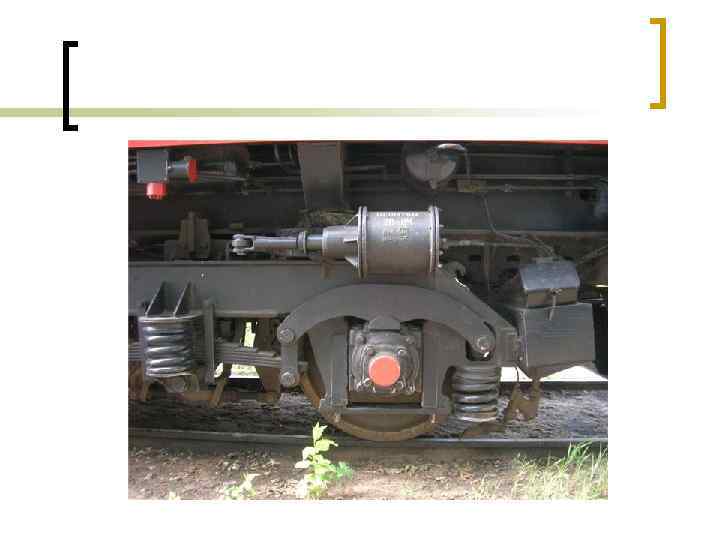 Тележки локомотива. Назначение и устройство n n n Рама тележки представляет собой цельносварную конструкцию прямоугольной формы, состоящую из двух боковин, связанных шкворневым и двумя концевыми брусьями. К нижнему листу боковин приварены малые и большие буксовые кронштейны отлитые из стали. На верхнем листе боковины в районе шкворневой балки имеется усиливающая накладка. К усиливающей накладке и боковине рамы приварены кронштейны люлечного подвешивания. На внутренней стороне боковин приварены кронштейны для подвесок тормозной системы, а на наружной – кронштейны под гидравлический амортизатор.
