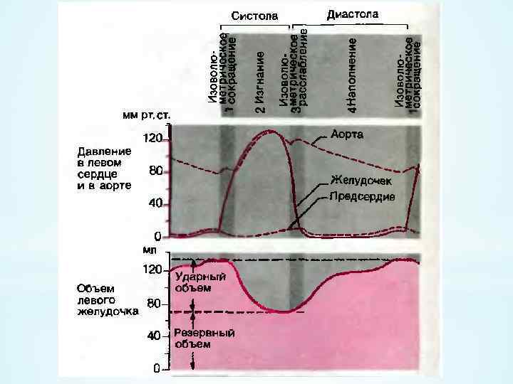 Период изгнания Ударный объём Резервный объём Количество крови, выбрасываемое за один цикл (УО). Конечносистолический объём крови (РО).
