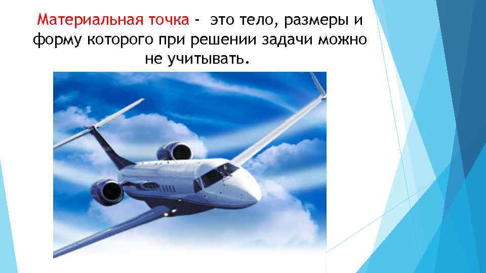 Материальная точка - это тело, размеры и форму которого при решении задачи можно не учитывать.