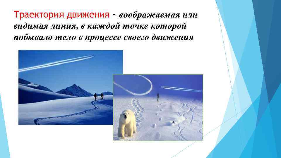 Траектория движения - воображаемая или видимая линия, в каждой точке которой побывало тело в процессе своего движения