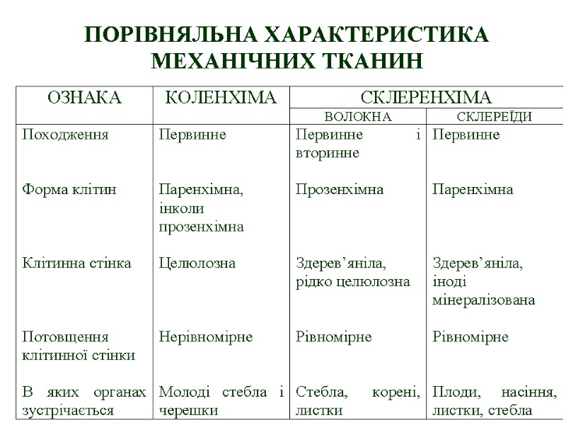 МЕХАНІЧНІ ТКАНИНИ коленхіма склеренхіма
