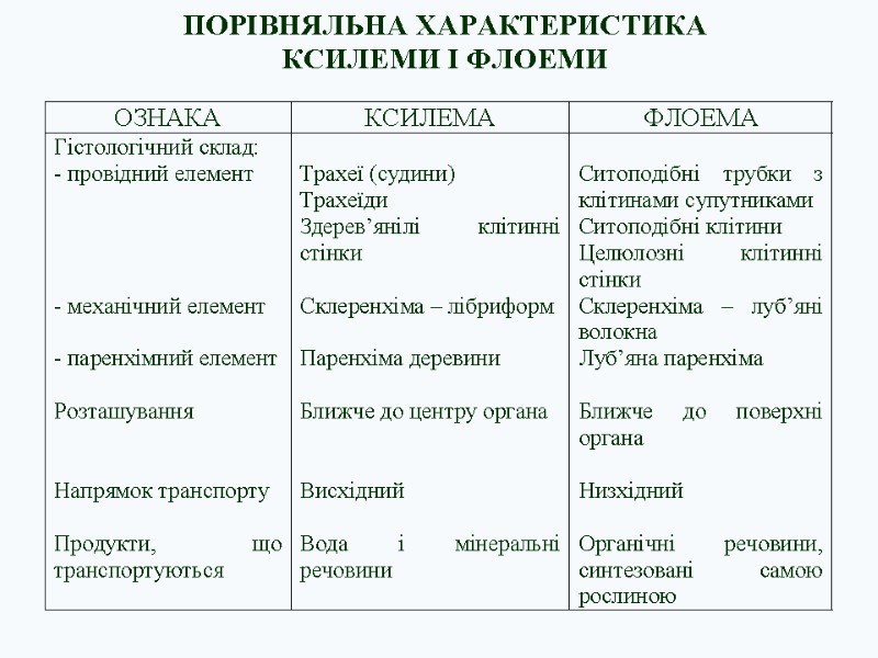 Порівняння провідних елементів ксилеми та флоеми
