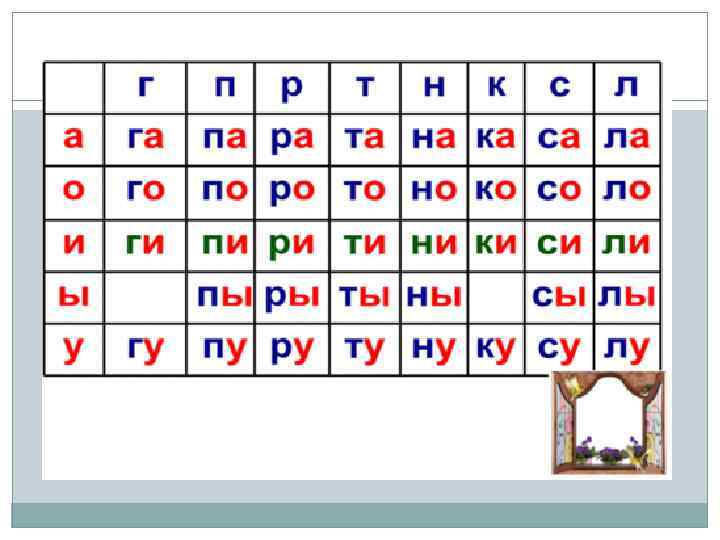 Инструментально-фиксируемые ориентиры чтения 1) Гласная буква, равная слогу (о-сы) 2) Гласная в слиянии с твердым согласным (ра ма) 3) Гласная в слиянии с мягким согласным (ли-са) 4) Согласная за пределами слога слияния (стол, ми-лый) 5) Йотированная гласная (ю-ла, обезь-яна) 6) Ь – показатель мягкости предыдущего согласного 7) Ь и Ъ разделительные 8) Пробел