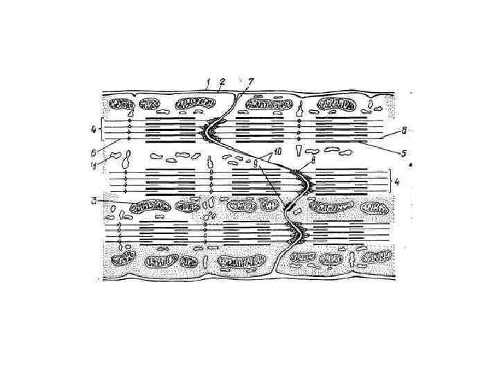 • Плотные тельца состоят из белка αактинина; аналоги Zлиний саркомеров. Две разновидности: • связанные с внутренней поверхностью сарколеммы; • свободно лежащие в цитоплазме в виде правильной цепочки. • К плотным тельцам прикрепляются актиновые и промежуточные десминовые филаменты.