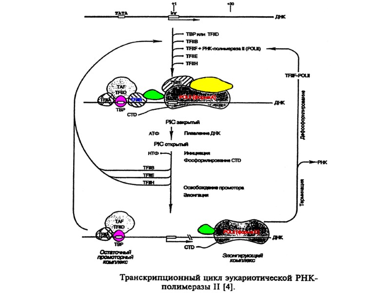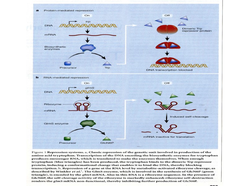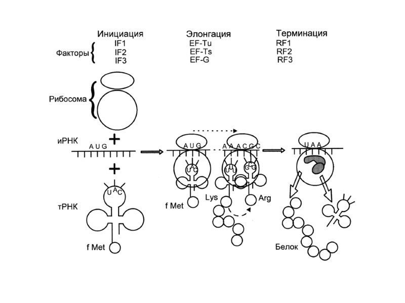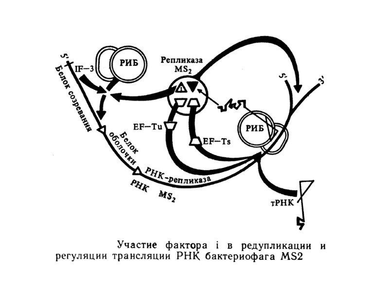L 4 S4 16S 39-4000 str 2 S7 16S 926-1391 spc 10 S8 16S 588- 651 S20 1 S20 16S 39- 403 L11 2 L1 23S 2120-2178 S10 11 L4 23S 320-325, 615 rif 2 L10 23S 1030-1124 Оперон Число кодируемых белков рибосомы Белок- трансляционнный репрессор Участок рРНК, связывающий белок-репрессор Рибосомные опероны E.coli, аутогенно-регулируемые на уровне трансляции (из Д.Дрейпера,1989)