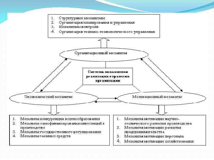 Система механизма внедрения стратегии Оргинизационный Экономический Мотивационный