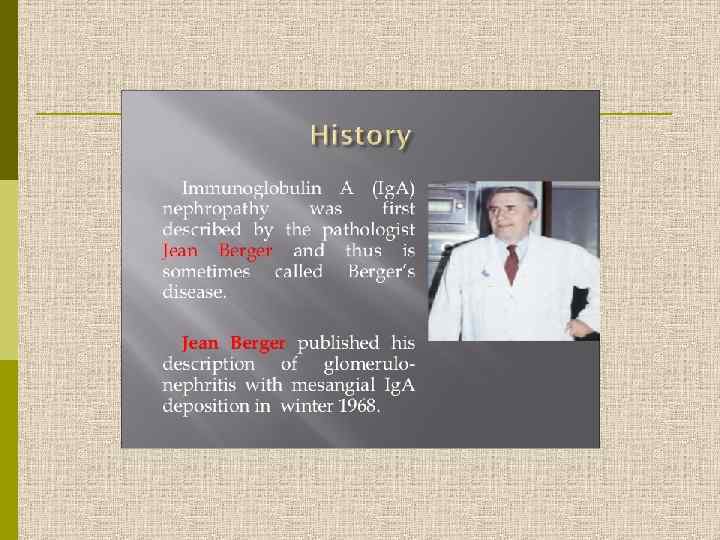 Диагностика Ig. А нефропатии p Концентрация Ig. А в сыворотке 3, 15 г/л является диагностическим критерием Ig. А нефропатии (!!? ? ) Tomino et al. , J Clin Lab Anal 2000, 14: 220 -223 p Диагноз Ig. A нефропатии требует выполнения диагностической нефробиопсии(!!!) p Микрогематурия с протеинурией <1 г/сут может рассматриваться как «неопасный» мочевой синдром p Нефробиопсия (как правило!) выполняется при стабильной протеинурии более 1 г/сут.