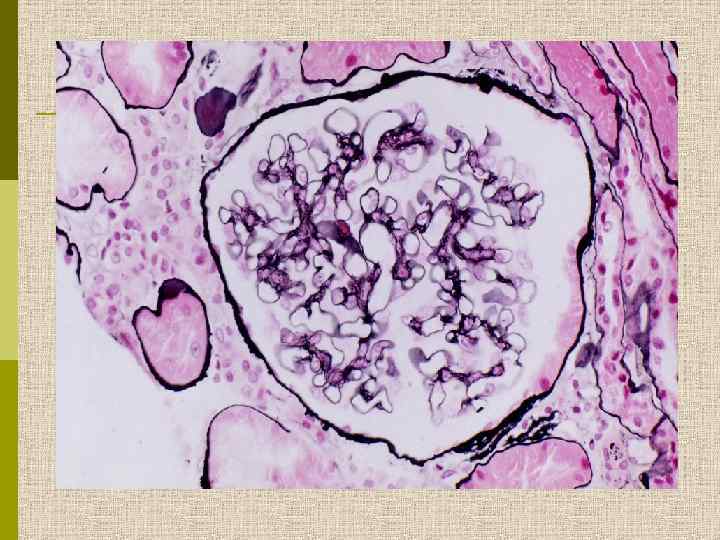 Мезангиопролиферативный гломерулонефрит Как морфологический феномен встречается при: - Ig. A – нефропатии - идиопатическом мезангиопролиферативном гломерулонефрите - разрешении постинфекционного гломерулонефрита - волчаночном нефрите II класса - других иммунокомплексных болезнях - некоторых болезнях отложения депозитов