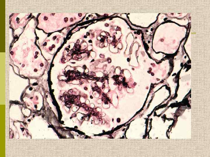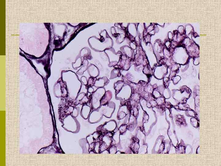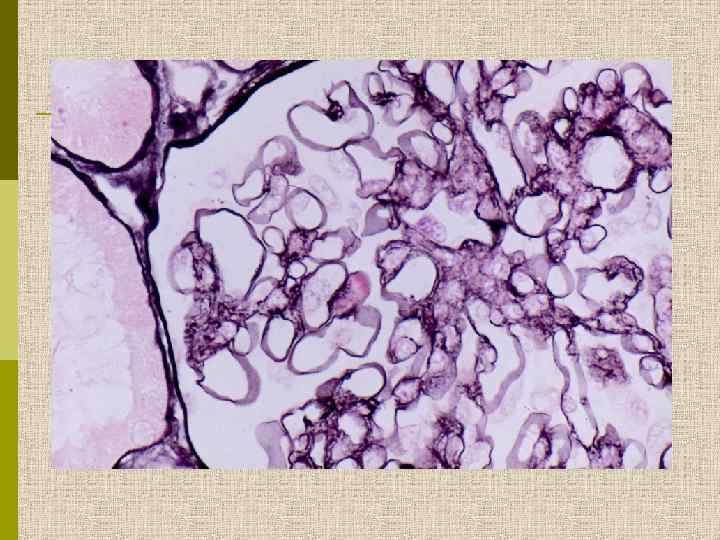 ОСОБЫЕ ФОРМЫ МЕЗАНГИОПРОЛИФЕРАТИВНОГО ГЛОМЕРУЛОНЕФРИТА p Болезнь Берже – первичная Ig. A-нефропатия Синонимы – первичная Ig. A–Ig. G нефропатия – фокальный сегментарный Ig. A-нефрит Клинический эквивалент – гематурический нефрит преимущественно доброкачественного течения p Ig. M–мезангиальная нефропатия Клинические особенности – высокая частота стероидорезистентного нефротического синдрома с плохим прогнозом; гематурия улучшает прогноз(!).
