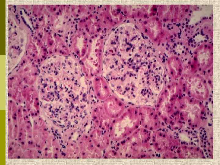 Факторы, обсуждаемые в патогенезе Ig. A-нефропатии p Избыточное поступление антигенов к слизистым p Избыточная проницаемость слизистых для антигенов p Избыточный антительный ответ на антигены, контактирующие со слизистыми p Отложение Ig. A в клубочках способствуют нарушению их структуры (напр. , анормальное гликозилирование снижение галактозы, стимулирующее полимеризацию Ig. A в циркуляции) p Снижение клиренса анормального Ig. A (нарушение связи с рецепторами и/или увеличение его афинности к мезангиальному матриксу p Не исключают и некоторую роль комплемента