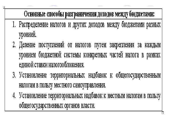 Задания бюджетного регулирования: l l l l - достижение соответствия между расходами и доходами местных бюджетов разных видов, т. е. их сбалансирование; - обеспечение равномерности в поступлении доходов для предупреждения разрывов в финансировании расходов; - достижение заинтересованности органов местного самоуправления в полной мобилизации доходов на своей территории; - обеспечение самостоятельности в использовании дополнительно полученных средств в процессе исполнения бюджетов; - перераспределение бюджетных ресурсов между «богатыми» и «бедными» в финансовом отношении территориями; - увязка объемов полученной финансовой помощи с конкретными усилиями по мобилизации налогов и сборов, привлечения дополнительных источников доходов; - осуществление финансового выравнивания.