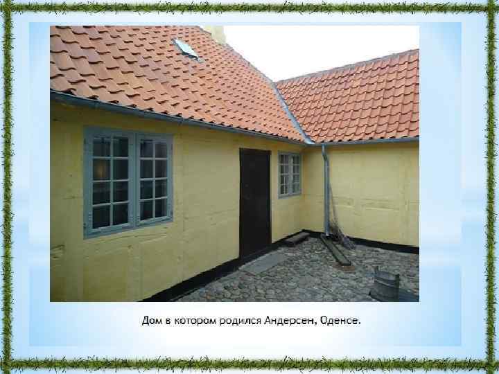 Никто не расскажет о том, что было, лучше автора. Он писал: "Жизнь моя настоящая сказка, богатая событиями, прекрасная! Если бы в ту пору, когда я бедным, беспомощным ребенком пустился по белу свету, меня встретила на пути могущественная фея и сказала мне: "Избери себе путь и дело жизни и я, согласно с твоими дарованиями и по мере разумной возможности, буду охранять и направлять тебя!" - и тогда жизнь моя не стала бы лучше, счастливее, радостнее. . . " "В городке Оденсе - продолжает Андерсен, - в бедной каморке жила молодая пара - муж и жена, бесконечно любившие друга: молодой двадцатилетний башмачник, богато одаренная поэтическая натура, и его жена, несколькими годами старше, не знающая ни жизни, ни света, но с редким сердцем. Только недавно вышедший в мастера, муж своими руками сколотил всю обстановку сапожной мастерской и даже кровать. На этой кровати 2 апреля 1805 года и появился маленький, орущий комочек - я, Ганс. Христиан Андерсен. Я рос единственным и потому балованным ребенком; часто мне приходилось выслушивать от матери, какой я счастливый, мне-то ведь живется куда лучше, чем жилось в детстве ей самой: ну, прямо настоящий графский сынок! - говорила она. Её саму, когда она была маленькой, выгоняли из дому, просить милостыню. Она никак не могла решиться и целые дни просиживала под мостом, у реки. Слушая ее рассказы об этом я заливался горючими слезами". (Г. -Х. Андерсен "Сказка моей жизни". 1855 год, перевод А. Ганзен)