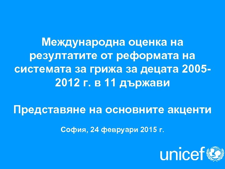 Международна оценка на резултатите от реформата на системата за грижа за децата 20052012 г. в 11 държави Представяне на основните акценти София, 24 февруари 2015 г.