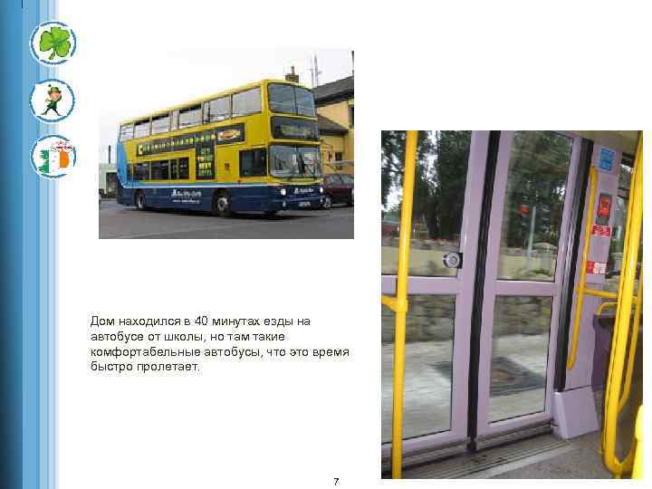 Дом находился в 40 минутах езды на автобусе от школы, но там такие комфортабельные автобусы, что это время быстро пролетает. 7