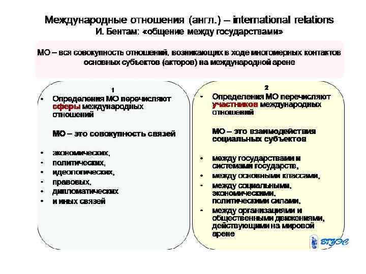 • Международные экономические отношения (МЭО) – экономические отношения между странами, группами стран и компаниями в системе мирового хозяйствования