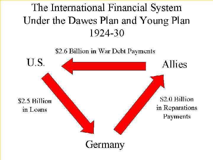 n Урегулирование проблемы репарационных выплат после Рурского кризиса (1923 г. ) «План Дауэса» (1924 г. ): - международный займ Германии; - временное снижение ежегодных репарационных выплат.